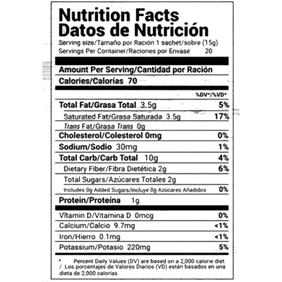 Disuelve una porción (30 g aprox.) en 150 ml de agua caliente. Revuelve y disfruta. Puedes tomarlo en la mañana o como bebida de media tarde.